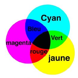 Les couleurs secondaires obtenue ici sont le cyan, magenta et jaune soit les couleurs primaires de la synthèse soustractive.